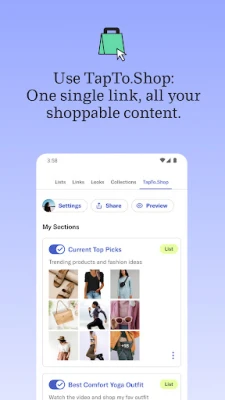 - Build & edit your TapTo.Shop is the Link-in-Bio Game Changer : a fully customizable storefront that showcases your shoppable content for audiences to easily purchase from your link-in-bio.