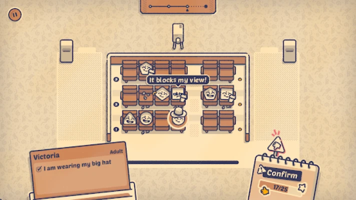 Play seating matchmaker to please picky characters. Discover each characters' unique traits—relatable, outlandish, and everything in between. Piece together satisfying puzzles with no timers or leaderboards. Unlock fun new scenarios as you progress—from bus rides to banquets!