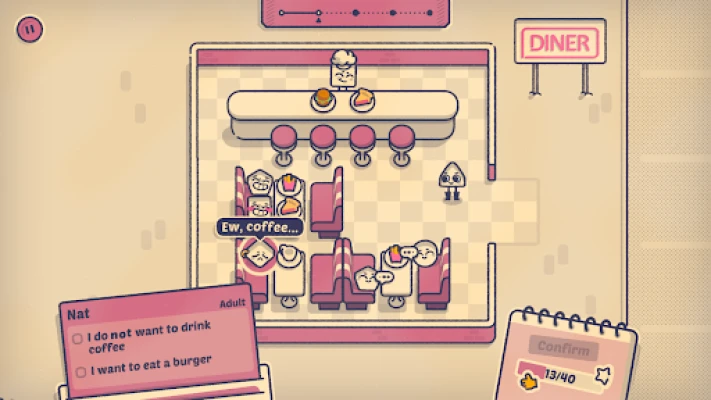 Window seat or aisle? Booth or table? Lone wolf or life of the party? In Is This Seat Taken?, your mission is to organize groups of people according to their preferences. It’s a cozy, no-pressure logic puzzle game where you’re in charge of who sits where.