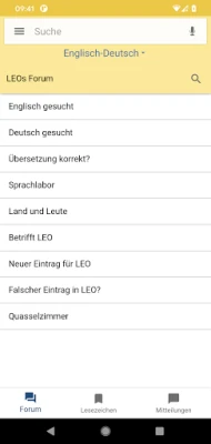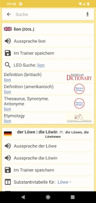 The application offers access to the LEO dictionaries, vocabulary trainer and forums.