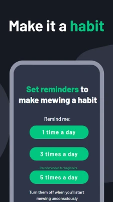 2) Make Mewing a Habit: Consistency is key to noticeable results. Our app will send random reminders throughout the day, ensuring you devote at least 6 hours to maintaining the mewing position. This approach not only saves you from forgetting to mew but also helps integrate this healthy practice into your daily routine.