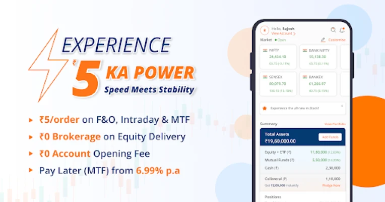 → Brokerage @ Rs.5/order across Intraday trading, F&O & MTF on our stock market app