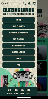 You can also use the app to explore all of the curated experiences that Outside Lands has to offer from Grass Lands to Cocktail Magic.