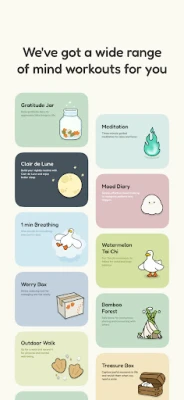You can create your own uplifting spaces with ‘Safe Place,’ ‘Proud Dandelion,’ ‘Treasure Box,’ and more to keep yourself motivated and make the mental health management experience even more joyful.