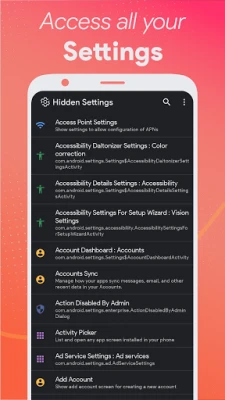Join thousands who have solved problems with our settings app. Whether you need a quick fix or just quick access to your device settings, Hidden Settings is the only settings app for Android you'll ever need for complete settings management.