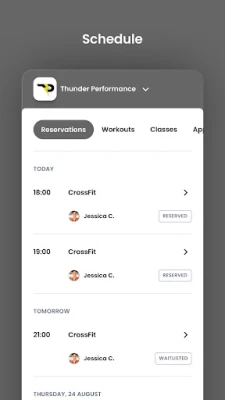 For members of Thunder Performance to reserve their place in a class, sign up for gym events, and general account management like updating headshots and credit card on file.