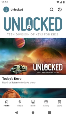 Unlocked is a quarterly devotional for teens featuring daily readings centered on God’s Word. You can read or listen each day. Each day’s devotion—whether fiction, poetry, or essay—asks the question: How does Jesus and what He did affect what we’re talking about? With daily readings designed to encourage discussion and a deeper walk with Christ, teens are encouraged both to engage with the Bible and to write and submit their own devotional pieces to Unlocked. With this app you can: