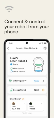 The Whisker Connect™ app allows you to remotely monitor and control your WiFi-enabled Litter-Robot unit(s) and Feeder-Robot unit(s) all in one place. This app brings you data about your cat’s litter box usage and your pet's feeding habits, giving you full control of your Litter-Robot 3 Connect and Feeder-Robot right from your phone.